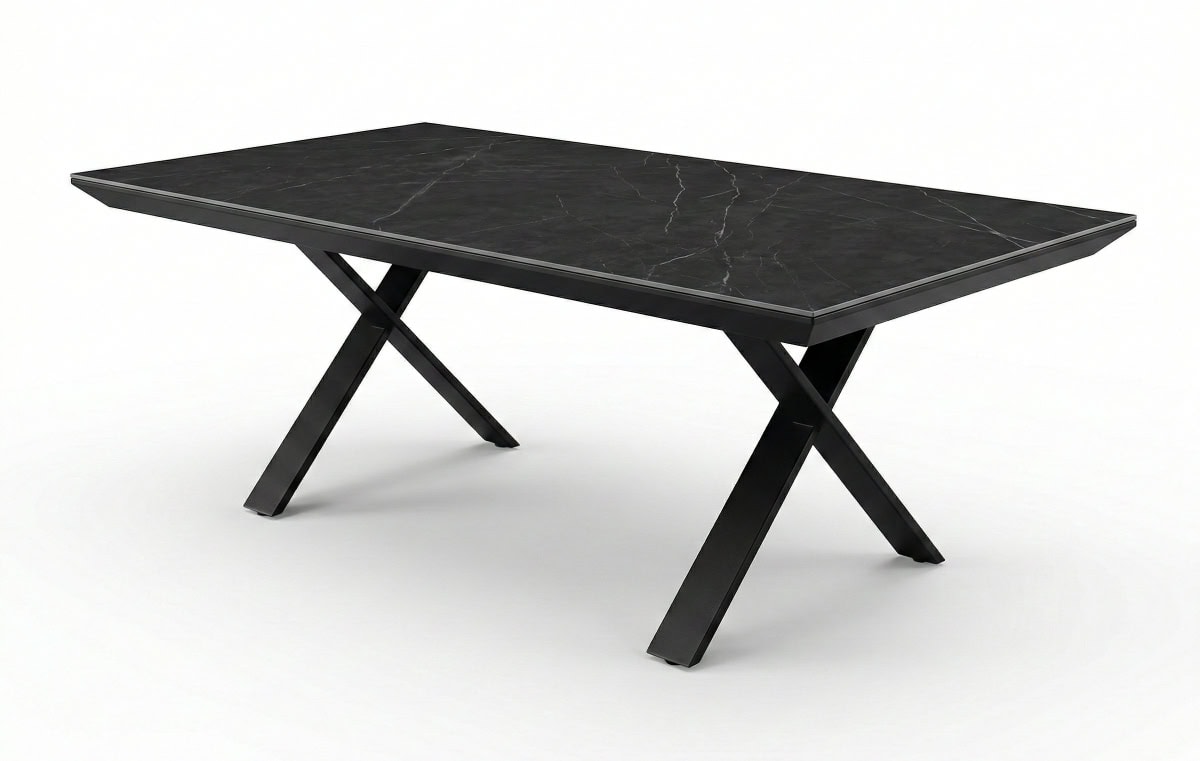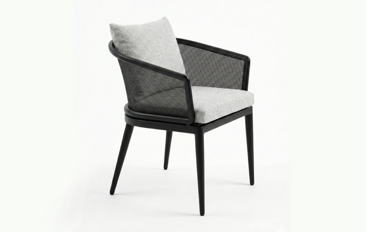 Bali-Nico Dining Collection Bali Dining Chair w/seat and Back Cushion Code: 9200ARM-BLK Size: W25”xD28”xH31” Seat H:18″ WT:22 Color: Aluminum Black Cane Webbing Nico 87×40 Table w/sintered Stone Top Code: 90015-87BLKWT: 98Color: Aluminum Black Contact Us